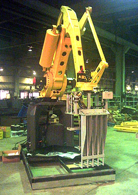 實績介紹 機械手系統工程 自動化系統工程 專用機系列 設備維修改造工程 夾/治/檢/量具系列 精密零件開發 鋁擠型加工系列 TFT包裝疊箱機器手夾爪 產業應用: 其它產業、TFT面板產業。 用途: 將輸送機上包裝入箱之TFT成品抓取至疊箱棧板上堆疊,後續流至封膜機上封PE膜。 特點: 最重可抓取85KG包裝箱,托爪設計可保護貴重成品箱之安全。 可夾持490Lx380Wx475H~1160Lx330Wx682H之大小成品箱。 ※特殊規格可依照需求訂作。 返回